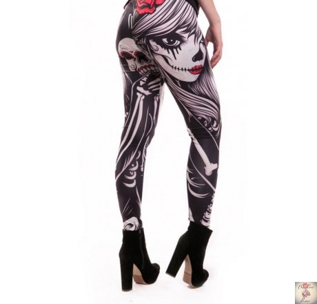Beautiful leggings patterned with sugar skull and skeleton motif. Free UK shipping.