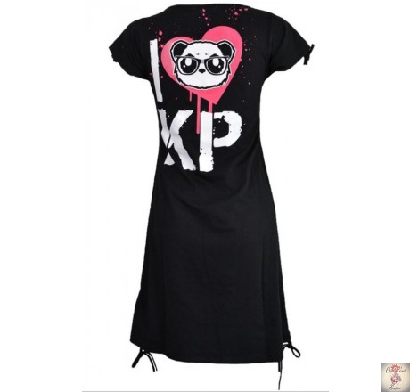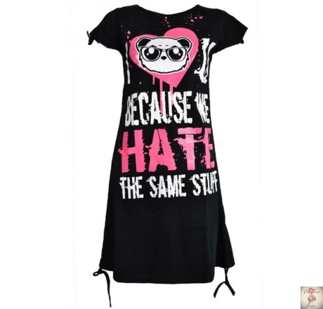 Black dress with the slogan "I Love You Because We Hate The Same Stuff" with Killer Panda logo in heart and I Love KP on back.