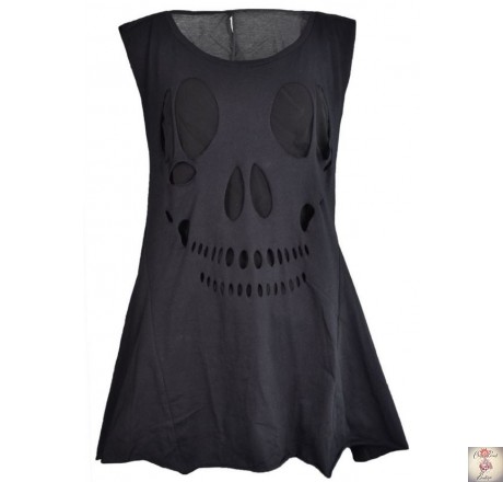 Black sleeveless top with wrap-effect back, and skull cut-out effect to the front. Free UK shipping.