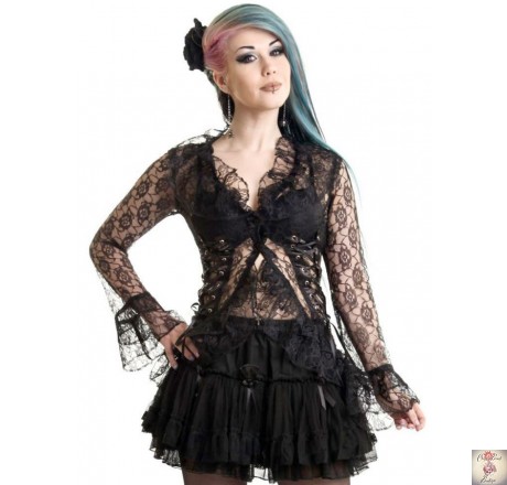 Lacy shirt with flared cuffs, corset to the back and corset-style lacing up both sides.